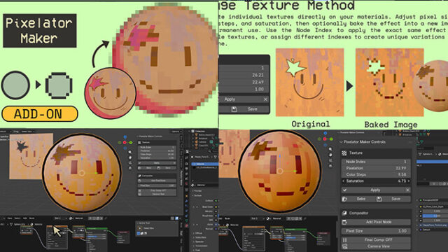 テクスチャ&マテリアル Pixelator Maker|テクスチャやシーン全体をドット絵風にピクセル化できるBlender用アドオン 2026年2月18日 modelinghappy https://modelinghappy.com/wp-content/uploads/2018/10/modelinghappy_logo.png 3DCG最新情報サイト MODELING HAPPY