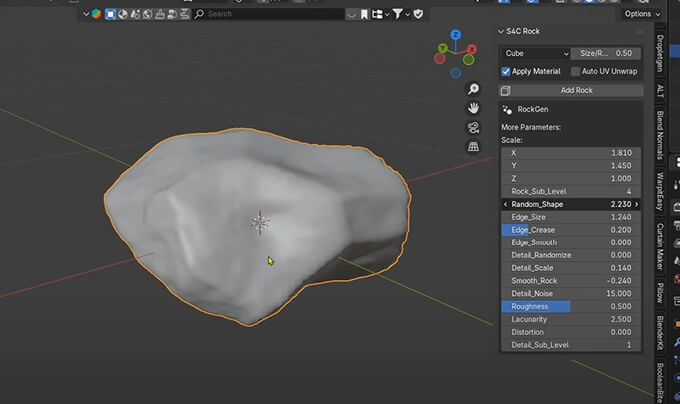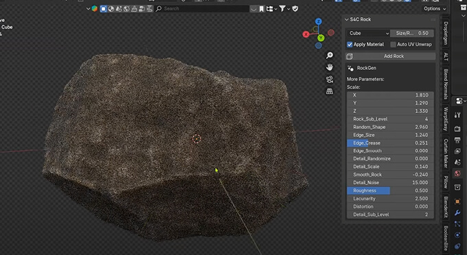 S4C Rock Generator 岩や石をパラメーター変更で簡単作成出来るBlender用無料アドオン