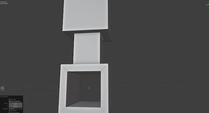 Inset Facesで面を内側に移動した部分の片方の面を下に移動させる事で簡単に貫通させて穴を開ける事も出来ます。