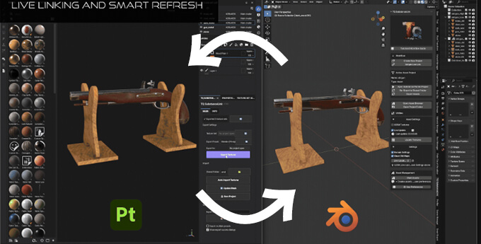 • Blenderのアセットやマテリアルと、Substance Painterのプロジェクトを完全にリンク。