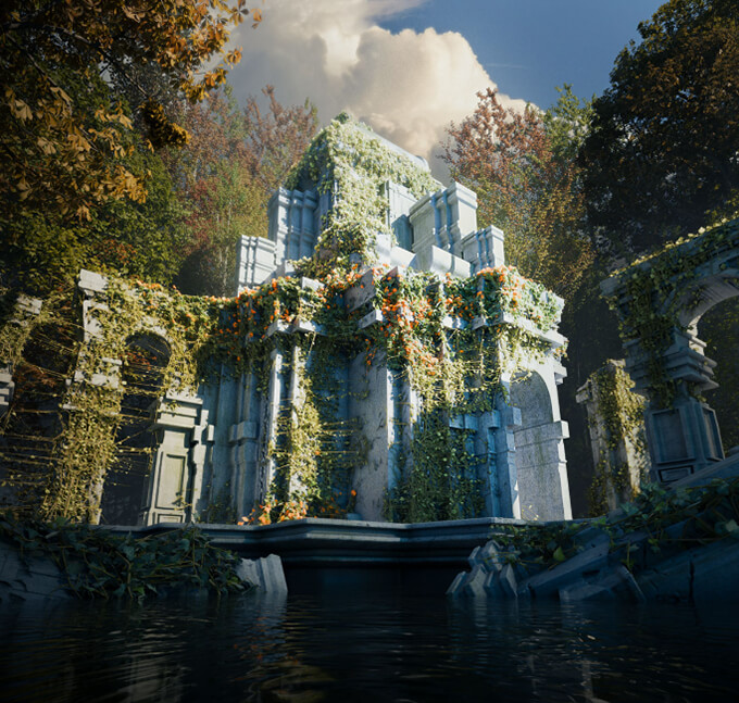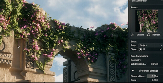 Ivy Generatorは、Blender 4.5以上で使用できる、ジオメトリノードベースのアドオンです。建物や岩、背景シーンなどにリアルなツタを簡単に生成することができます。