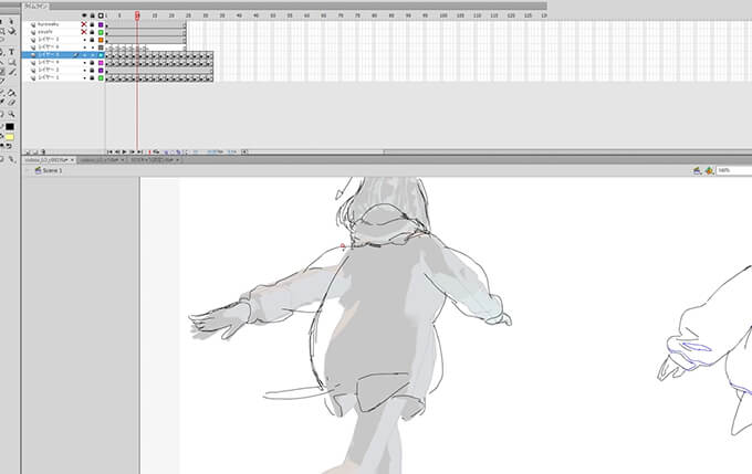 コンテが出来たら作ったアニメーションを下絵にして効率的にラフ原画を描き、さらに綺麗な線で描いて色を塗っていく方法も解説してくれます。