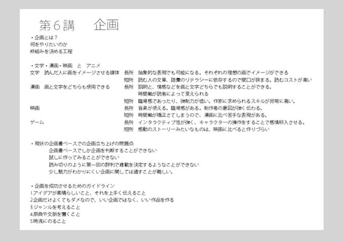 ●シナリオ:セリフだけでなく、映像で伝える構成を意識。字よりも絵で考える柔軟さが大切。