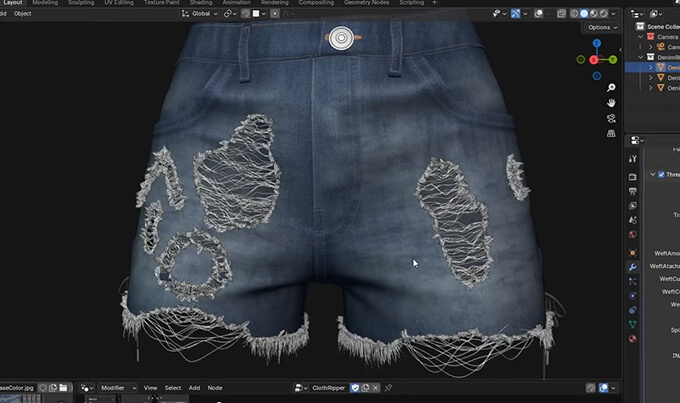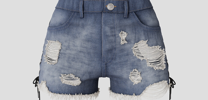 ほつれ部分はUV展開され自由にテクスチャを適用可能。