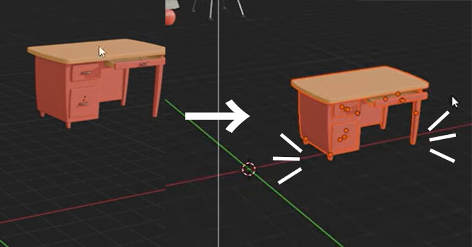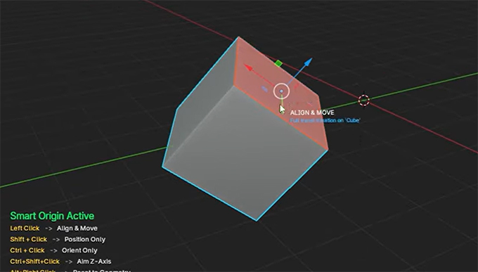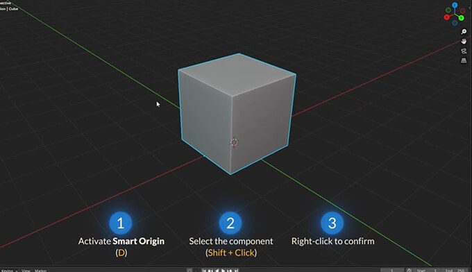 Mayaの原点移動から着想を得て開発された機能で、アドオンから1ボタンまたはDキーを押してモデルのエッジや頂点等をクリックするだけでその場所を原点に直ぐに移動する事ができます。
