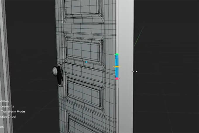 動画では扉の金具と扉のパーツの原点を移動せずに指定した軸をもとに回転しています。