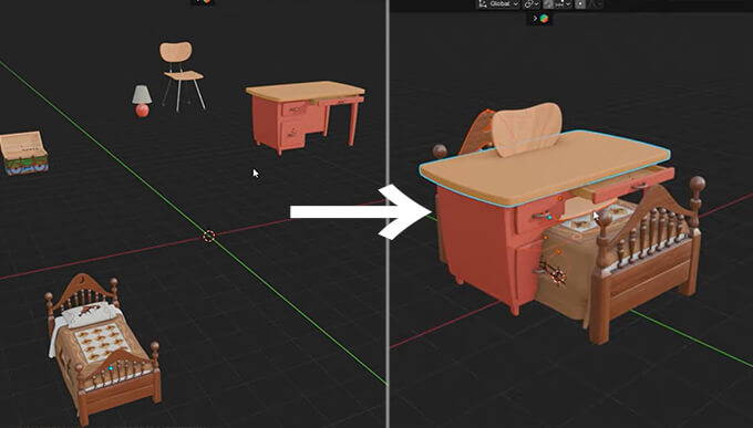 オブジェクトを1クリックで原点に移動、複数オブジェクトを原点の中心に移動したり、コレクション内に入ってるオブジェクトを1つのグループとして原点に複数個あっても1クリックでまとめる事もできます。