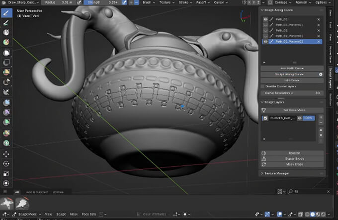 Sculpt Along Curve – Substance 3D Painterのパスツールのように、Blenderのカーブで部分的に凹凸や模様を作成出来る無料アドオン