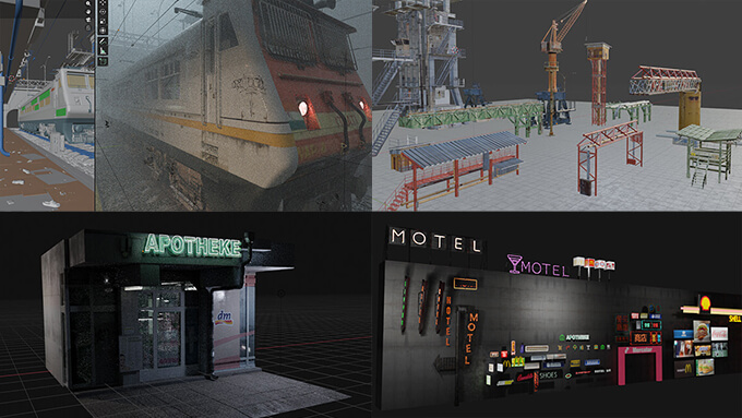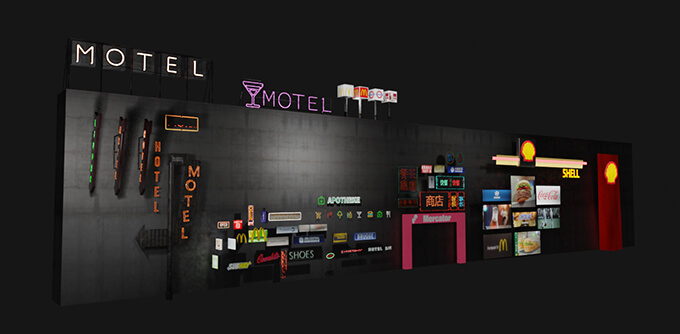 ローポリで作成されていますが、テクスチャと看板の作りが良いので参考にする事が出来ます。