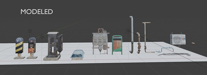 こちらはフォトスキャンされたモデルと、1から作られたモデルデータの素材です。