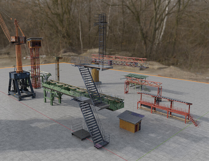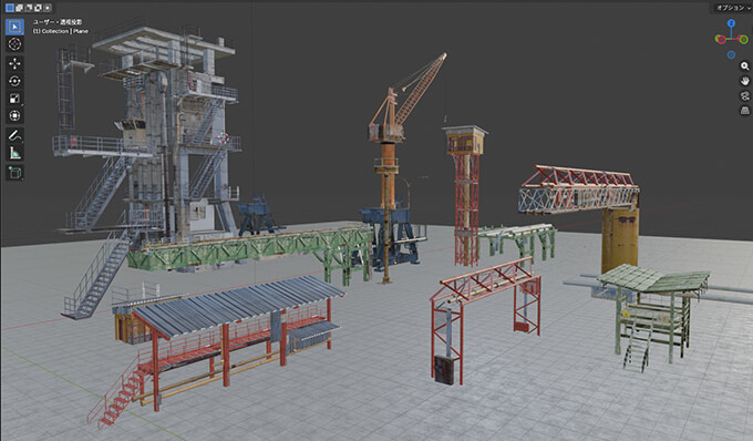 背景用の大型産業構造物のアセットは15種類含まれていて、テクスチャも付属しています。