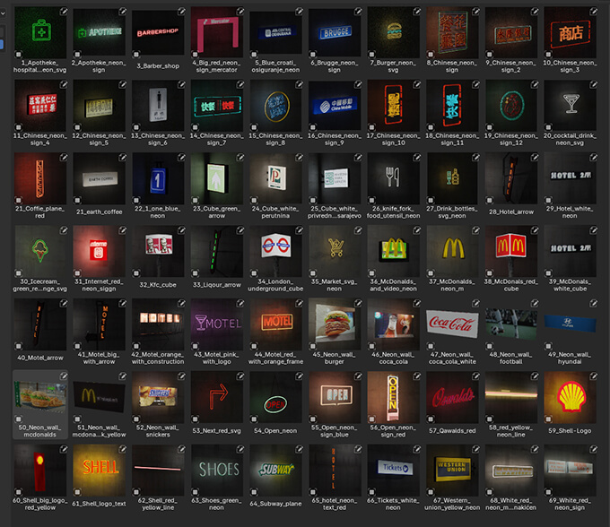 ネオン素材70種類と、15種類の大型産業構造物のアセットが遠景用として綺麗に作られていて、それに細かな素材にチュートリアル動画もあって定価16.48ドルがセール価格で12.36ドルとかなりお得な素材セットとなっていました。