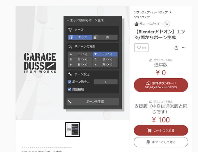 Blenderでキャラクター作成過程をアップしたり、Boothでメカ・ファンタジー・武器などを販売しているだっすーさんが、選択したエッジまたは連続面からボーンを自動生成するアドオンを無料配布しています。