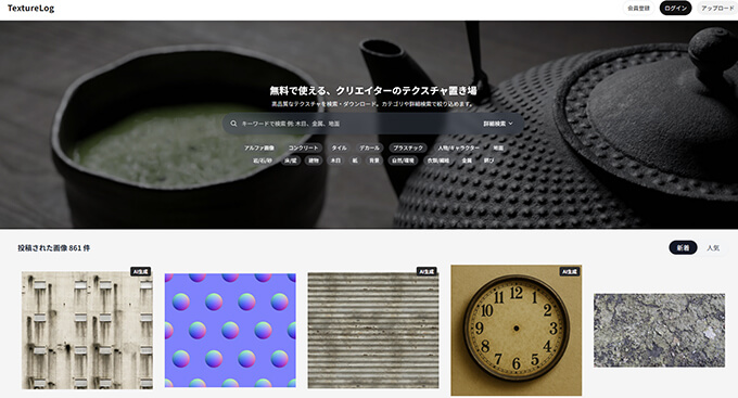 クリエイターが自作したテクスチャ画像や、PBRテクスチャを誰でも自由に登録して商用利用で使えるサイトTextureLogがリリースされました。
