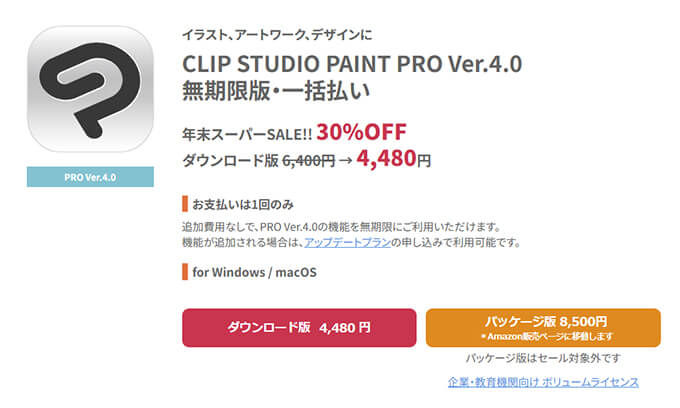 CLIP STUDIO PAINT PRO Ver.4.0 6,400円→4,480円
