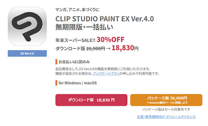 CLIP STUDIO PAINT EX Ver.4.0 26,900円→18,830円