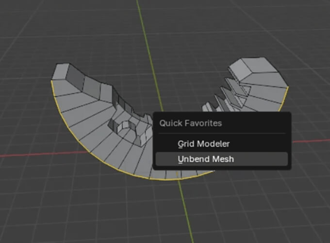 例えば曲がっているモデルのエッジを選択してUnbend Meshを使用すると、モデルを一直線にする事が出来ます。
