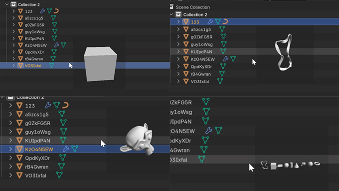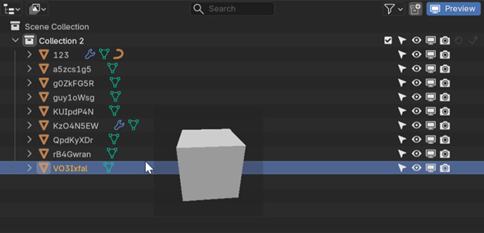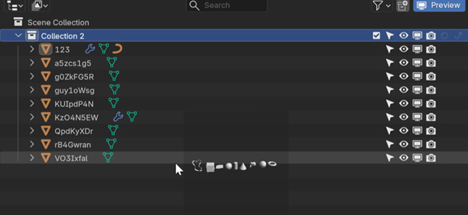 Outliner Model PreviewはBlenderのアウトライナー上のモデルにマウスを持ってくると、それがどんな形状のモデルなのか、360度に回転した小さなプレビュー画像を表示しながら分かりやすくしてくれるアドオンです。