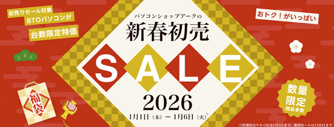 アークでは1月3日までお得な数量限定セールや、1月6日までPCパーツを含めた福袋が販売しています。