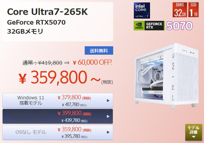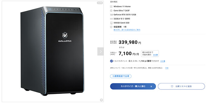 | グラフィックボード | GeForce RTX 5070 12GB |