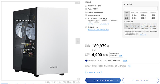 | ストレージ | 500GB NVMe SSD(Gen4) |