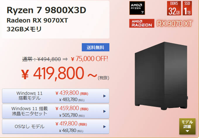 | グラフィックボード | AMD Radeon RX 9070 XT |