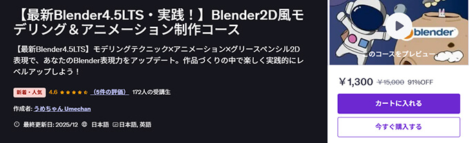 【最新Blender4.5LTS・実践!】Blender2D風モデリング&アニメーション制作コース