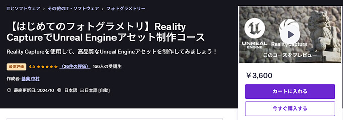 はじめてのフォトグラメトリRealityCaptureでUnreal Engineアセット制作コース