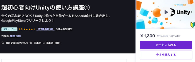 超初心者向けUnityの使い方講座① 19,000円→1,300円