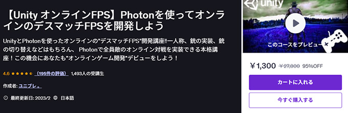 Unity オンラインFPS】Photonを使ってオンラインのデスマッチFPSを開発しよう27,800円→1,300円