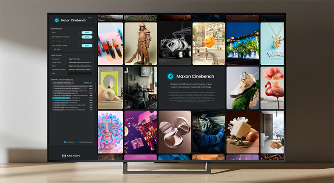 パフォーマンスが強化された、Cinebench 2026は最新のハードウェア技術を活用し、Windows版のNVIDIAの新しいBlackwell GPU(5000シリーズ)およびAMD 9000シリーズGPU、そしてNVIDIA HopperおよびBlackwellデータセンターGPUとの互換性を追加しました。さらに、Cinebench 2026はApple M4およびM5搭載システムもサポートするようになりました。
