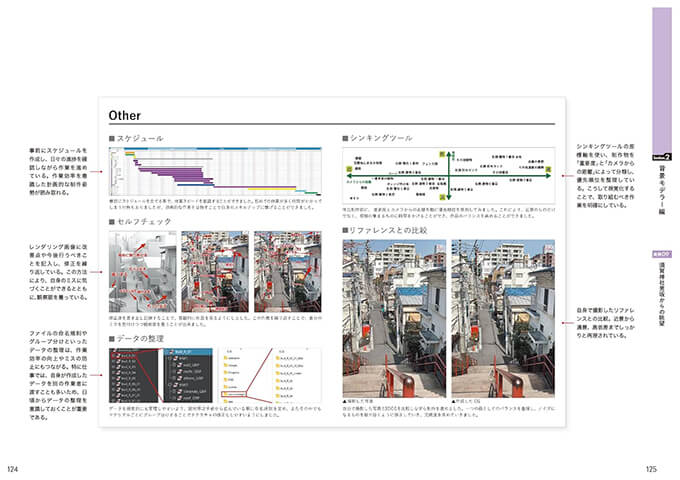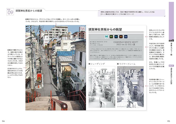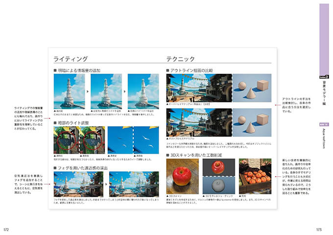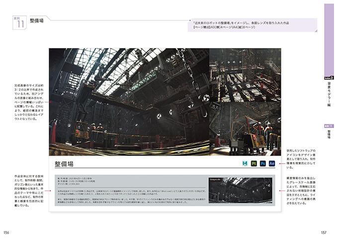 サブタイトルにもあるように『作品から学ぶ』ことは⼤変重要で、先⼈たちがどのように作品やポートフォリオを作成したのかを学ぶと、⾃分に⾜りないものなども⾒えてきます。本書は、ポートフォリオ制作の段階で初めて読むのではなく、⽇々のCG作品の制作の前段階から読み、参考にして頂きたいと思っています。