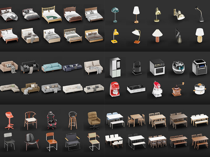 Interior Model 0.26 | 8,000+ High-Quality 3D Modelsは8000種類を超えるインテリアモデルがセットになったアセット集です。