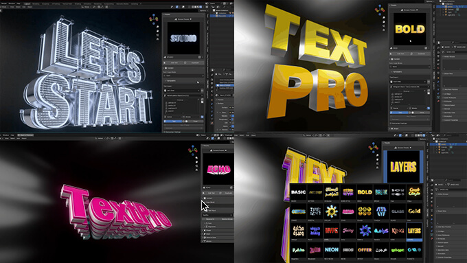 TextProは、Blenderのテキストを、3D化・装飾・アニメーション化まで一括で行える文字制作アドオンです。