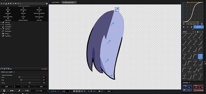また、一度作った動きのタイミングを修正する方法、複数の髪の毛の揺れを調整する細かな調整方法、口をタイムリマップを使って動かす方法、小さなパーツでもアニメーションの原則を意識しながら動かしているからこそ生き生きとした動きになる事を教えてくれます。