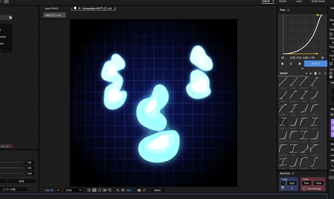 また、テンポよく動かすために便利なプラグインを使ってレイヤーに一定のリズムでアニメーションが作成しやすくなるガイドの作り方や、キーフレームのグラフを滑らかに動かすのに便利なプラグインを使って動かす方法などを解説。