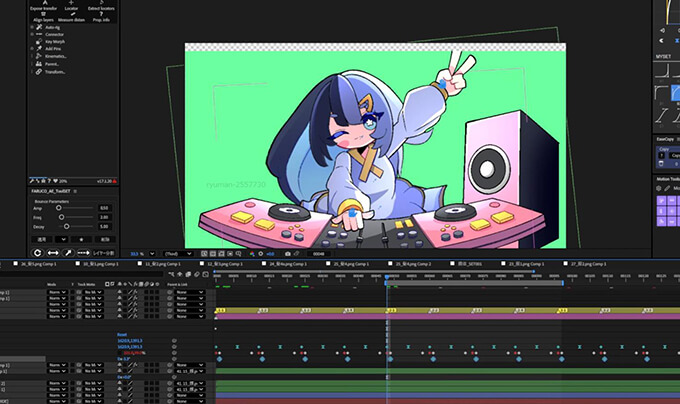 制作実践では可愛らしいDJをやっている女の子のイラストをもとに動かす方法を学びますが、ここでもイラスト素材をダウンロードして同じように作り方を学べます。