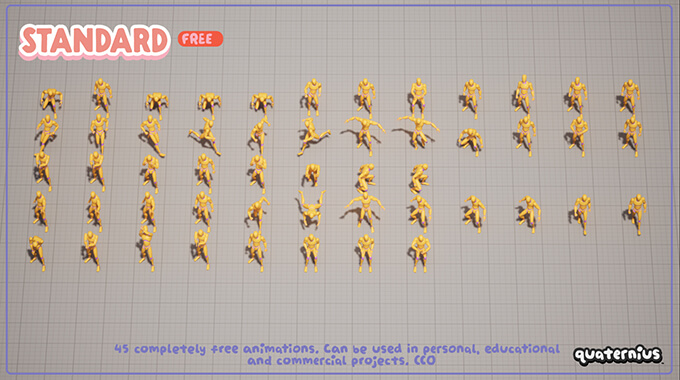 Standard版は無料でダウンロードできますが、収録数は全体の60〜70%程度となっています。有料のSource版は全アニメーションが収録されており、リグとアニメーションを含む.blendファイルも付属するため、Blender上で一部調整も可能です。価格は14.99ドルで販売されています。