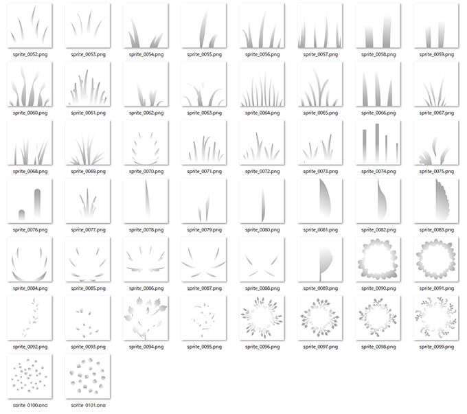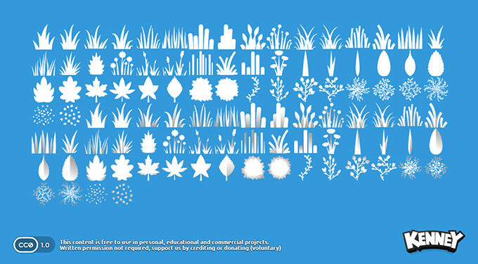 無料でゲーム用アセット素材が配布されているKENNEYのサイトで50種類以上の草や葉っぱに使えるシンプルな形状のアセット素材が無料配布されています。
