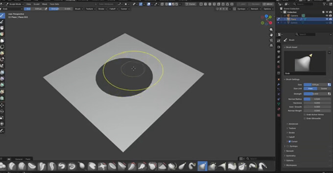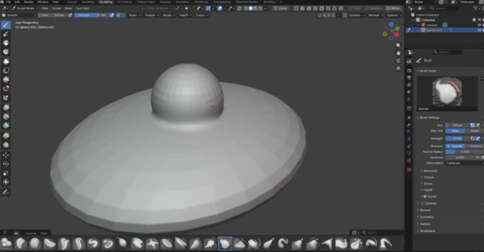 culpting Extra Meshes + Curveは、Blenderでスカルプト作業を効率化するための無料アドオンです。右上のヘッダーバーからワンクリックでスカルプトモードへ切り替えることができて、スカルプト開始までの手間を大幅に減らしてくれます。