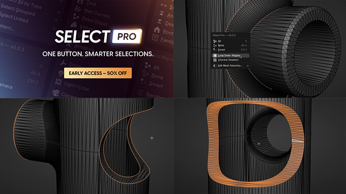 Select Proは現在、早期アクセス版としてSUPRE HIVE(旧 Blender Market)で定価15ドルのところ、7.50ドルで購入できます。