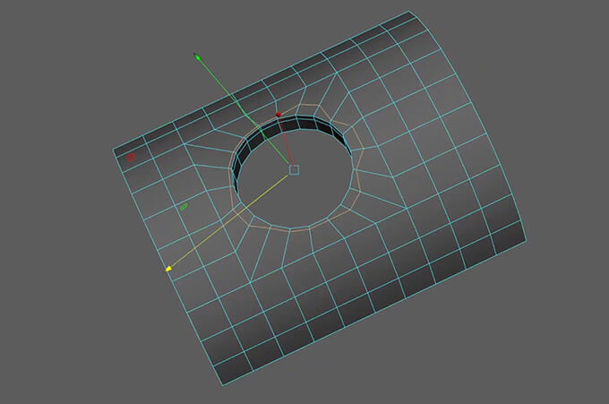 内側や側面にあるエッジループに対しても、n-gon(多角形)を含むフェースを崩すことなく、等間隔で綺麗に複数エッジを調整できます。