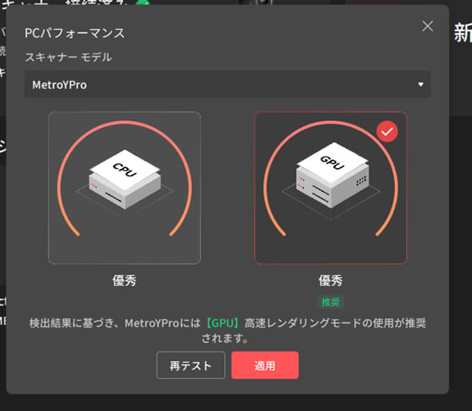 アプリを起動すると、CPUまたはGPUどちらを使用するか自動的に選んでくれます。