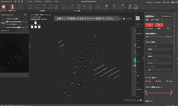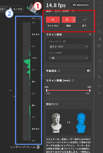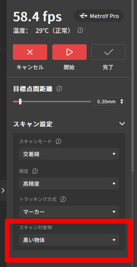 黒い物をスキャンする場合は「スキャン対象物」を「黒い物体」に変更することでスキャンすることが可能になります。