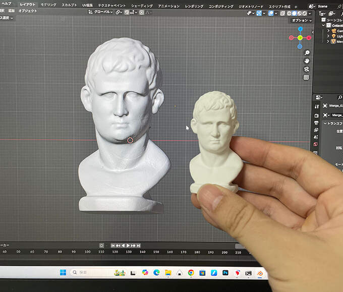 Blenderに読み込んでみると、細かい凹凸もしっかり表現されているのが分かりました。