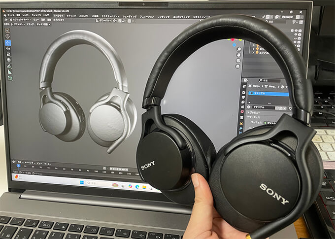 例えばこちらのヘッドホンも、表裏スキャンしてオブジェクト化してBlenderに読み込むことが出来ました。