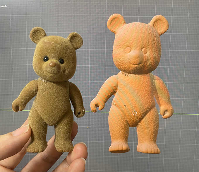 可愛いクマのお人形もスキャンしてみましたが、2回に分けてスキャンして合成することで綺麗に360度モデルを作ることが出来ました。