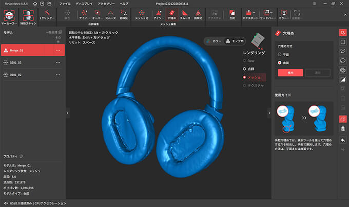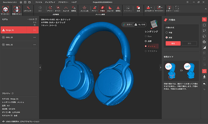 まで一通り完結できるため、スキャンから3Dデータ化までの流れが非常にスムーズです。