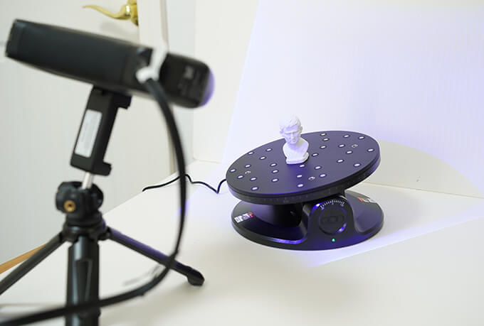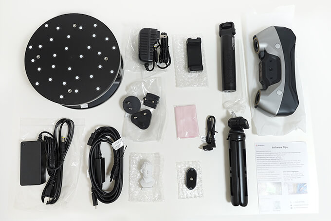 MetroY 3Dスキャナー本体・USB Type-C to Type-Cケーブル・電源アダプター・三脚・2軸ターンテーブル・サンプル彫像・モバイル充電セット(第三世代)