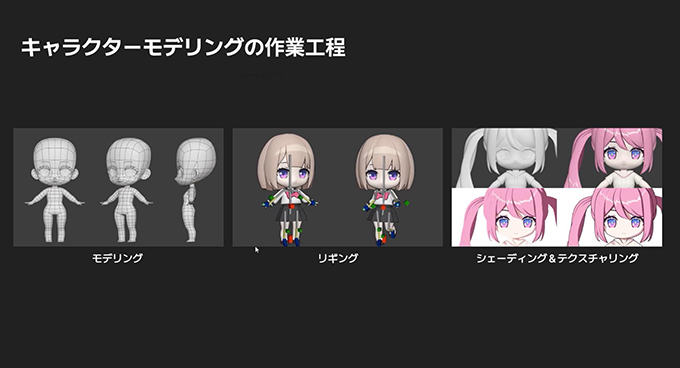 そこまで難しい知識は必要としないので、可愛いSDキャラクターを制作しながら、キャラクターモデリングの基本的な考え方やリギングを学びた人には理解しやすい内容となっていました。